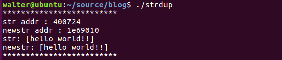 str 포인터와 newstr 포인터의 주소가 다른것을 확인할 수 있습니다.