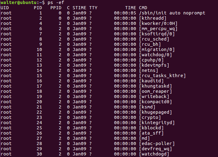System V 계열에서는 ps -ef를 BSD 계열에서는 ps aux를 많이 사용합니다.